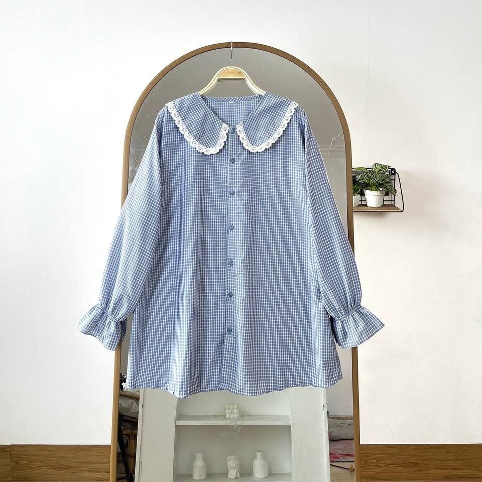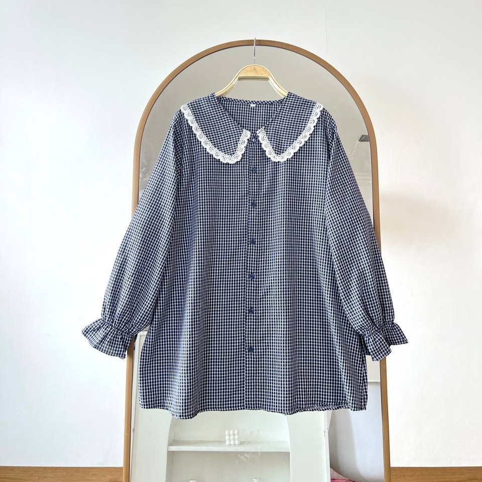Detail Produk ` Bahan cotton oxford ` Atasan cutting a-line ` Leher berkerah (Kemeja kerah Point, Blouse kerah Peter Pan) ` Penutup full kancing hidup (busui friendly) ` Lengan panjang (Kemeja pergelangan berkancing, Blouse pergelangan terompet) Detail Size ' Lingkar dada . 120 / 130 / 140 / 150 ' Lingkar bawah . 138 / 148 / 158 / 168 ' Lingkar ketiak . 62 / 64 / 70 / 74 ' Lingkar lengan kemeja . 26 / 26 / 26 / 28 ' Lingkar lengan Blouse . 30 / 34 / 36 / 40 (setelah ditarik) ' Panjang bahu . 12 / 13 / 14 / 15 ' Panjang lengan . 55 / 56 / 58/ 59 ' Panjang baju . 75 / 76 / 80 / 82 Note. ' Lingkar bawah = Lingkar paling bawah / lingkar pinggul ' Detail size diatas adalah hasil perataan sample acak ukur, perbedaan ukuran dari yang tertera diatas merupakan hal wajar karena produksi masal. Untoleransi ukuran / komplain ukuran jika ukuran pada produk lebih kecil / setara dengan ukuran yang diatasnya. ` Persentase kemiripan antara foto dan keaslian produk adalah 98% ` Tidak ada garansi tukar size ` Ketersediaan stok sesuai etalase, produk yang kosong akan kami konfirmasi sebelum di kirim, pastikan selalu memeriksa Chat pukul 18.00 untuk membalas konfirmasi jika produk kosong. Pengiriman : ` pembayaran sebelum jam 15.00 ikut pengiriman di hari yang sama (reguler pengiriman masal pukul 18.00 / instant atau sameday diproses setiap jam pada 08.00 - 15.00) ` Pesanan yang masuk diluar jam diatas, akan ikut pengiriman di keesokan harinya Waktu pengiriman : ` J&T/Instant/Sameday pengiriman setiap hari ` Membeli = setuju, happy shop ^.^