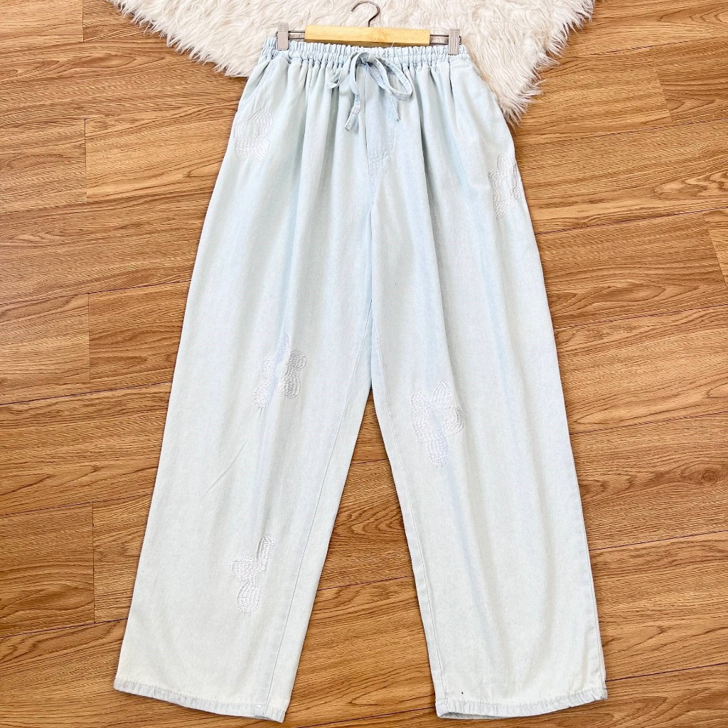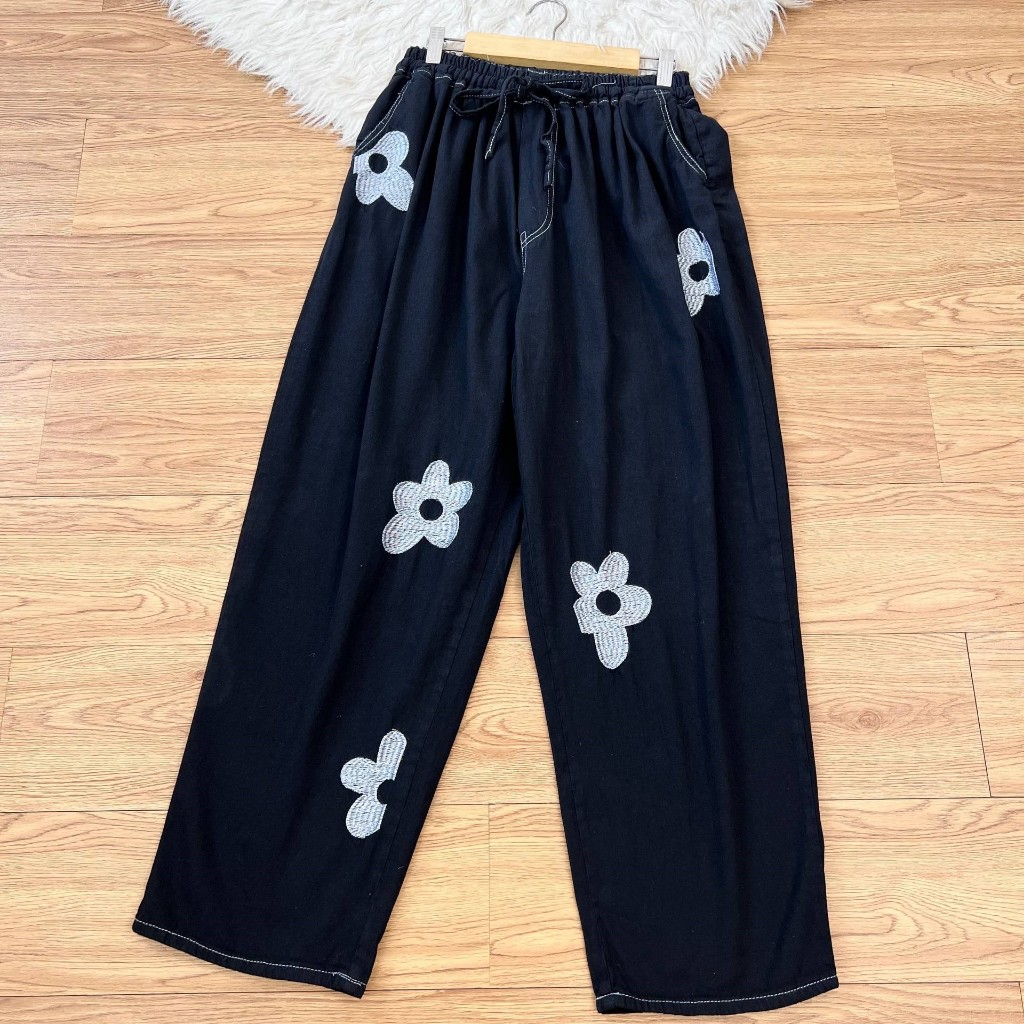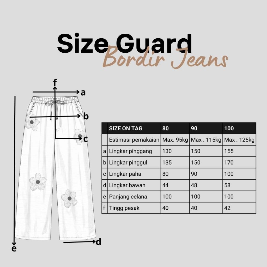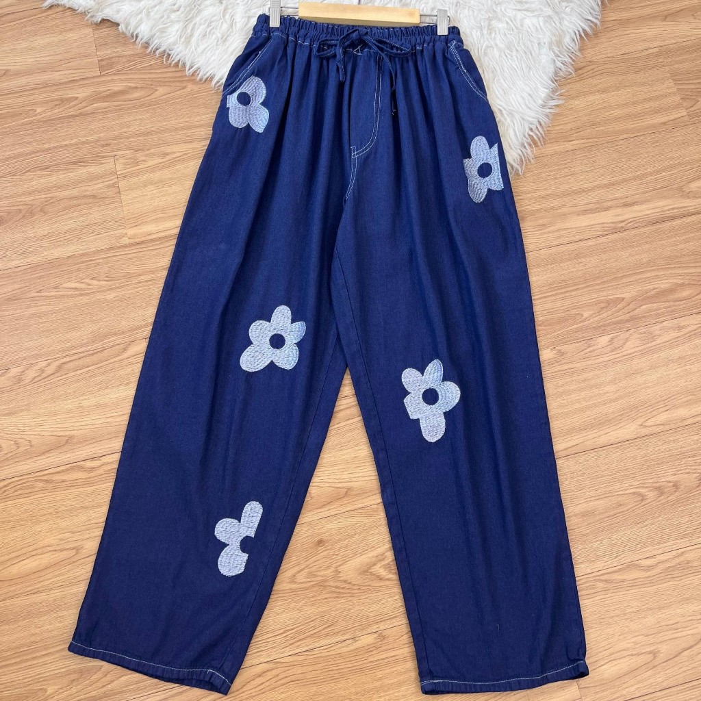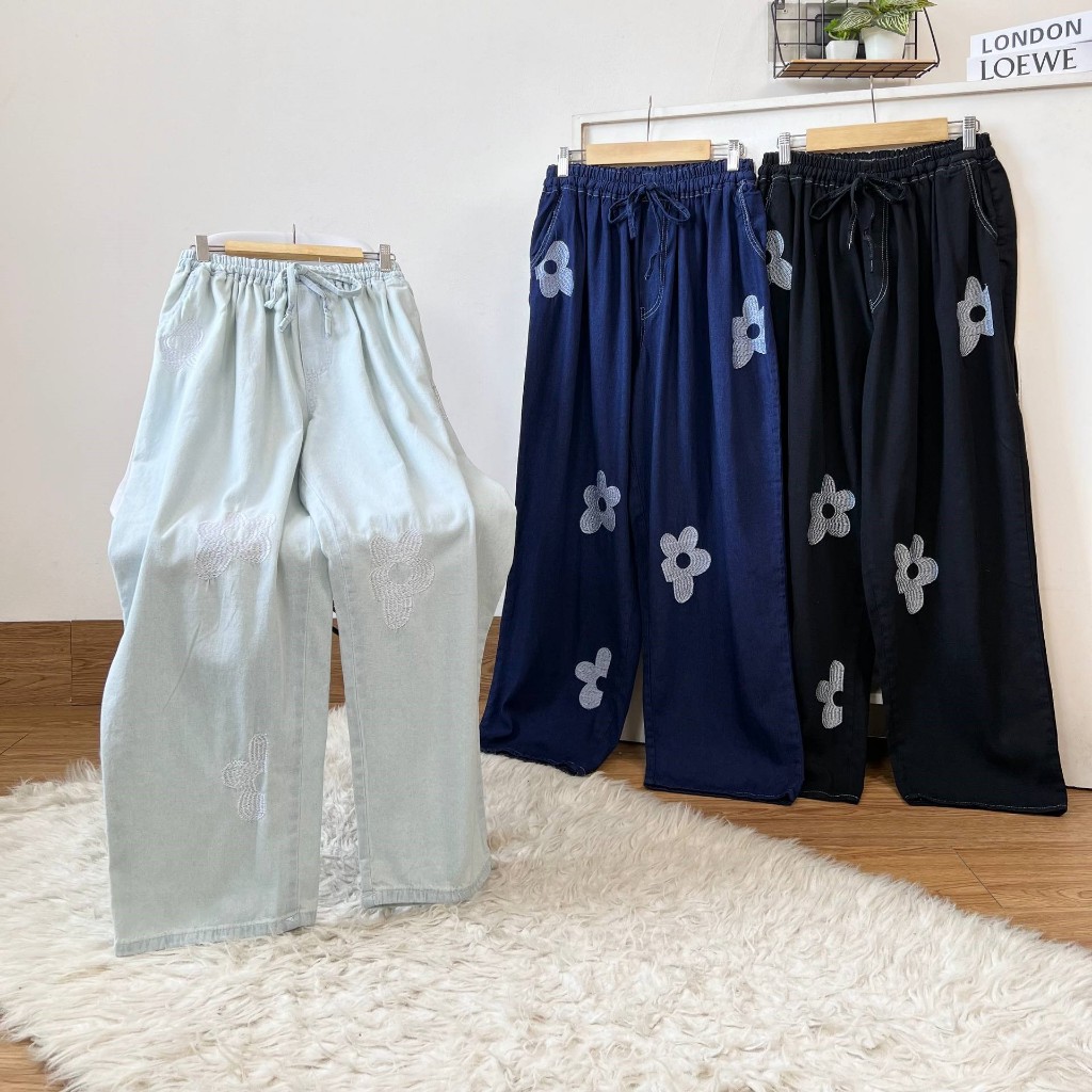 Detail Produk . ' Bahan semi jeans (no strech) ' Cutting Baggy (bagian bawah lebih kecil) ' Variasi bordir bunga (hanya dibagian depan) ' Lingkar pinggang full karet (bisa diadjust dengan tali serut) ' Kantong kanan dan kiri Detail Size . Lingkar pinggang . 65-130 / 75-150 / 80-155 . Lingkar pinggul . 135 / 150 / 170 . Lingkar Paha . 80 / 90 / 100 . Lingkar kaki . 44 / 48 / 58 . Tinggi pesak . 40 / 40 / 42 . Panjang Celana . 100 / 100 / 100 Note. - Warna asli sesuai foto 97% (dipengaruhi intensitas cahaya) - Garansi return tertera di slide foto ke 2 - Detail size diatas adalah hasil perataan sampel acak ukur, perbedaan ukuran dari yang tertera diatas merupakan hal wajar karen produksi masal. Intoleransi ukuran / komplain ukuran jika ukuran pada produk lebih kecil / setara dengan ukuran yang diatasnya ` Ketersediaan stok sesuai etalase, produk yang kosong akan kami konfirmasi sebelum di kirim, pastikan selalu memeriksa Chat pukul 18.00 untuk membalas konfirmasi jika produk kosong. Pengiriman : ` pembayaran sebelum jam 16.00 ikut pengiriman di hari yang sama pada pengiriman masal pukul 18.00 ` Pemesanan Instant yang masuk sebelum jam 16.00 akan segera di proses ` Pemesanan sameday yang masuk sebelum jam 15.00 akan segera di proses ` Pesanan yang masuk diluar jam diatas, akan ikut pengiriman di keesokan harinya Waktu pengiriman : ` JNE/JTR/CARGO pengiriman hari senin-sabtu ` J&T/Instant/Sameday pengiriman setiap hari ` Membeli = setuju, happy shop ^.^