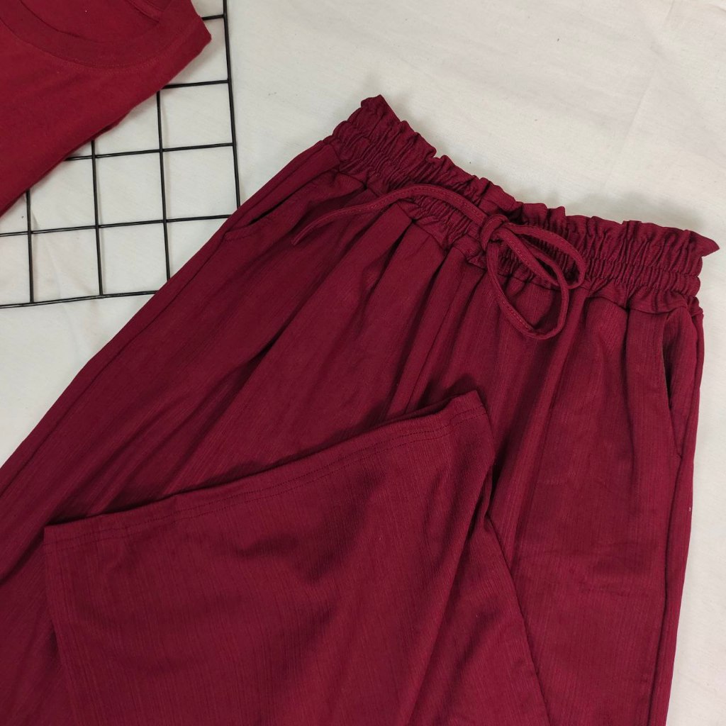Detail Produk ` Bahan Knitt Candycrush (strech 10-20cm, tebal, tidak menerawang) ` Cutting lurus / loose pants ` Saku kanan dan kiri ` Lingkar pinggang full karet (bumil friendly) ` Ada tali serut (adjustable) Detail Size (Strech max 20cm) ' Size . Jumbo (max 95Kg) / Super Jumbo (max 120Kg) ' Lingkar pinggang . 60-140 / 65-150 ' Lingkar pinggul . 140 / 150 (strech) ' Lingkar Paha . 80 / 90 (strech) ' Lingkar Kaki . 80 / 90 (Stretch) ' Panjang Celana . 99 / 100 ' Tinggi Pesak . 43 / 47 Note. ` Detail size diatas adalah hasil perataan sampel acak ukur, perbedaan ukuran dari yang tertera diatas merupakan hal wajar karen produksi masal. Intoleransi ukuran / komplain ukuran jika ukuran pada produk lebih kecil / setara dengan ukuran yang diatasnya ` Ketersediaan stok sesuai etalase, produk yang kosong akan kami konfirmasi sebelum di kirim, pastikan selalu memeriksa Chat pukul 18.00 untuk membalas konfirmasi jika produk kosong. Pengiriman : ` pembayaran sebelum jam 16.00 ikut pengiriman di hari yang sama pada pengiriman masal pukul 18.00 ` Pemesanan Instant yang masuk sebelum jam 16.00 akan segera di proses ` Pemesanan sameday yang masuk sebelum jam 15.00 akan segera di proses ` Pesanan yang masuk diluar jam diatas, akan ikut pengiriman di keesokan harinya Waktu pengiriman : ` JNE/JTR/CARGO pengiriman hari senin-sabtu ` J&T/Instant/Sameday pengiriman setiap hari ` Membeli = setuju, happy shop ^.^