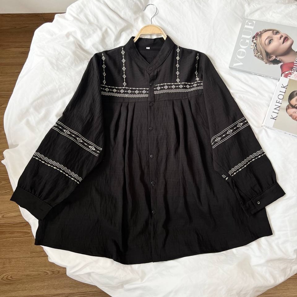 Detail Produk ` Bahan linen bordir ` Blouse cutting a-line ` Kerah sanghai ` Lengan panjang, pergelangan berkancing ` Variasi bordir ` Penutup full kancing hidup Detail Size ' Lingkar dada . 120 / 130 / 140 / 150 ' Lingkar bawah . 160 / 170 / 180 / 190 ' Lingkar ketiak . 62 / 66 / 70 / 74 ' Lingkar lengan . 24 / 26 / 26 / 26 ' Panjang bahu . 14 / 16 / 16 / 17 ' Panjang pergelangan tangan . 55 / 57 / 58 / 59 ' Panjang baju . 74 / 76 / 79 / 81 Note. ' Lingkar bawah = Lingkar paling bawah / lingkar pinggul ' Detail size diatas adalah hasil perataan sample acak ukur, perbedaan ukuran dari yang tertera diatas merupakan hal wajar karena produksi masal. Untoleransi ukuran / komplain ukuran jika ukuran pada produk lebih kecil / setara dengan ukuran yang diatasnya. ` Persentase kemiripan antara foto dan keaslian produk adalah 98% ` Tidak ada garansi tukar size ` Ketersediaan stok sesuai etalase, produk yang kosong akan kami konfirmasi sebelum di kirim, pastikan selalu memeriksa Chat pukul 18.00 untuk membalas konfirmasi jika produk kosong. Pengiriman : ` pembayaran sebelum jam 15.00 ikut pengiriman di hari yang sama (reguler pengiriman masal pukul 18.00 / instant atau sameday diproses setiap jam pada 08.00 - 15.00) ` Pesanan yang masuk diluar jam diatas, akan ikut pengiriman di keesokan harinya Waktu pengiriman : ` J&T/Instant/Sameday pengiriman setiap hari ` Membeli = setuju, happy shop ^.^