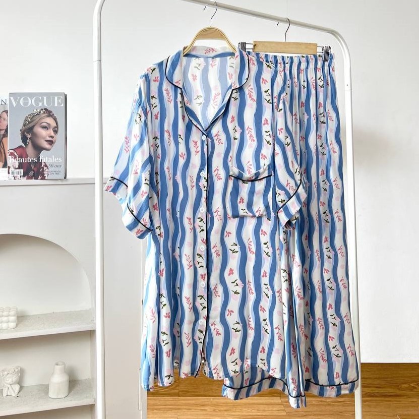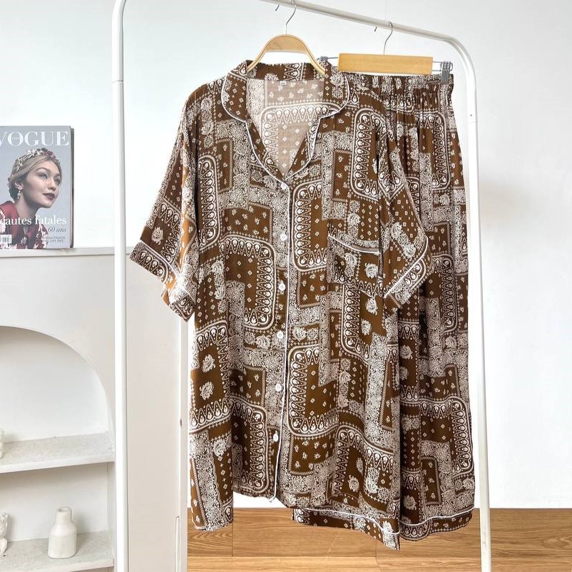Detail Produk ` Bahan rayon (no strech) ` Full motif sesuai variasi ` Cutting atasan a-line model kemeja ` Cutting bawahan celana panjang model baggy ` Leher berkerah ` Penutup full kancing hidup (busui friendly) ` Saku sebelah kiri ` Lengan pendek ` Lingkar pinggang full karet ` Kantong celana kanan dan kiri Detail Size Ukuran Label . 2XL / 3XL / 4XL / 5L ' Lingkar dada . 120 / 130 / 140 / 150 ' Lingkar bawah . 130 / 140 / 150 / 160 ' Lingkar ketiak . 62 / 66 / 68 / 72 ' Lingkar lengan . 42 / 46 / 48 / 50 ' Panjang bahu . 16 / 16 / 19 / 19 ' Panjang lengan . 30 / 30 / 30 / 30 ' Panjang baju . 79 / 80 / 82 / 85 Size 2XL / 3XL / 4XL / 5L ' Lingkar pinggang. 118 / 128 / 138 / 148 ' Lingkar pinggul. 130 / 140 / 150 / 160 ' Lingkar paha . 76 / 90 / 94 / 100 ' Lingkar bawah . 64 / 70 / 74 / 76 ' Panjang celana . 102 / 102 / 102 / 102 ' Tinggi pesak . 35 / 35 / 36 / 36 Note. ' Lingkar bawah = Lingkar paling bawah / lingkar pinggul ' Detail size diatas adalah hasil perataan sample acak ukur, perbedaan ukuran dari yang tertera diatas merupakan hal wajar karena produksi masal. Untoleransi ukuran / komplain ukuran jika ukuran pada produk lebih kecil / setara dengan ukuran yang diatasnya. ` Persentase kemiripan antara foto dan keaslian produk adalah 98% ` Tidak ada garansi tukar size ` Ketersediaan stok sesuai etalase, produk yang kosong akan kami konfirmasi sebelum di kirim, pastikan selalu memeriksa Chat pukul 18.00 untuk membalas konfirmasi jika produk kosong. Pengiriman : ` pembayaran sebelum jam 15.00 ikut pengiriman di hari yang sama (reguler pengiriman masal pukul 18.00 / instant atau sameday diproses setiap jam pada 08.00 - 15.00) ` Pesanan yang masuk diluar jam diatas, akan ikut pengiriman di keesokan harinya Waktu pengiriman : ` J&T/Instant/Sameday pengiriman setiap hari ` Membeli = setuju, happy shop ^.^
