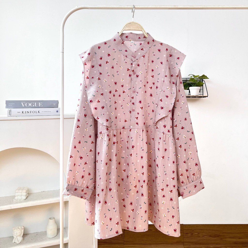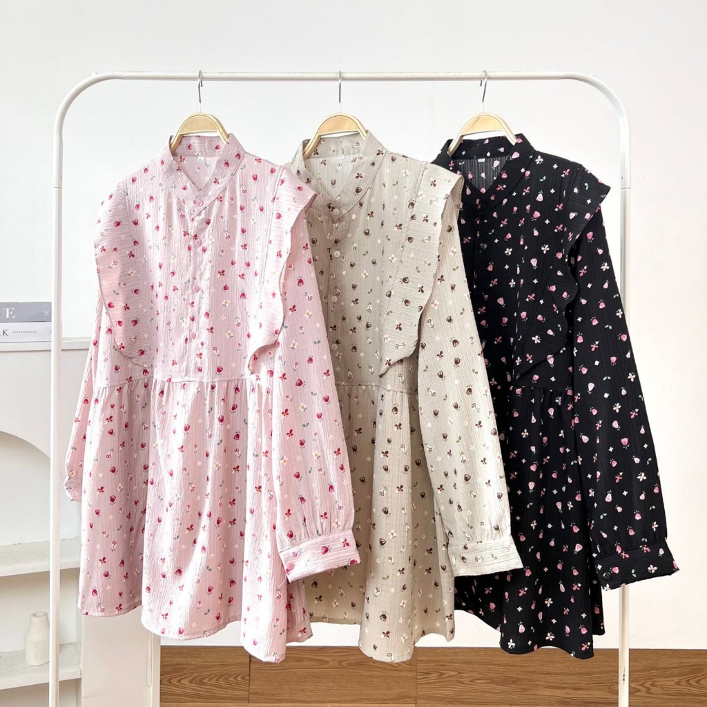 Detail Produk ` Bahan crinkle bermotif (strech) ` Cutting blouse a-line, rempel di lingkar perut ` Kerah shanghai ` Penutup kancing hidup sampai dada (busui friendly) ` Lengan panjang, pergelangan berkancing ` Variasi layer wavy dibagian kanan kiri dada Detail Size ' Lingkar dada . 120 / 130 / 140 / 150 ' Lingkar bawah . 160 / 170 / 180 / 190 ' Lingkar ketiak . 66 / 68 / 72 / 76 ' Lingkar lengan . 24 / 26 / 26 / 28 ' Panjang bahu . 15 / 16 / 17 / 19 ' Panjang lengan . 57 / 57 / 59 / 60 ' Panjang baju . 79 / 82 / 84 / 86 Note. ` Detail size diatas adalah hasil perataan sampel acak ukur, perbedaan ukuran dari yang tertera diatas merupakan hal wajar karen produksi masal. Intoleransi ukuran / komplain ukuran jika ukuran pada produk lebih kecil / setara dengan ukuran yang diatasnya ` Persentase kemiripan antara foto dan keaslian produk adalah 98% ` Tidak ada garansi tukar size ` Ketersediaan stok sesuai etalase, produk yang kosong akan kami konfirmasi sebelum di kirim, pastikan selalu memeriksa Chat pukul 18.00 untuk membalas konfirmasi jika produk kosong. Pengiriman : `Senin - Minggu (Sebelum jam 15.00 ikut pengiriman di hari yang sama) #Pesanan yang masuk diluar jam diatas, akan ikut pengiriman di keesokan harinya ` Membeli = setuju, happy shop ^.^