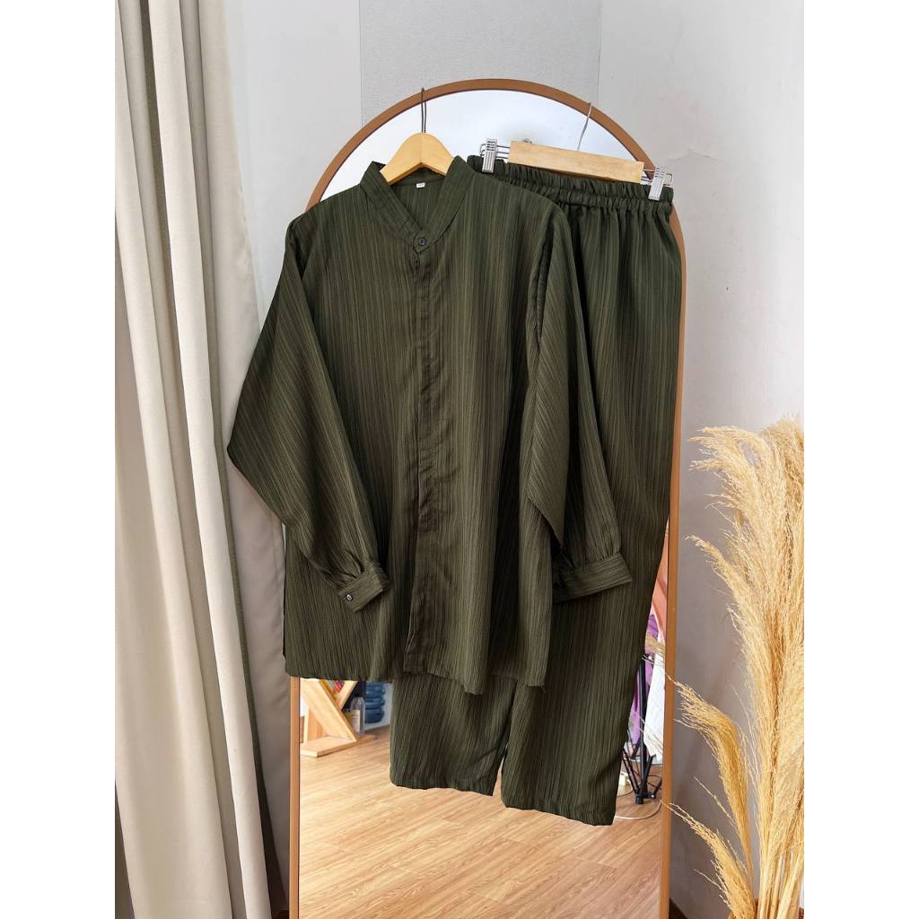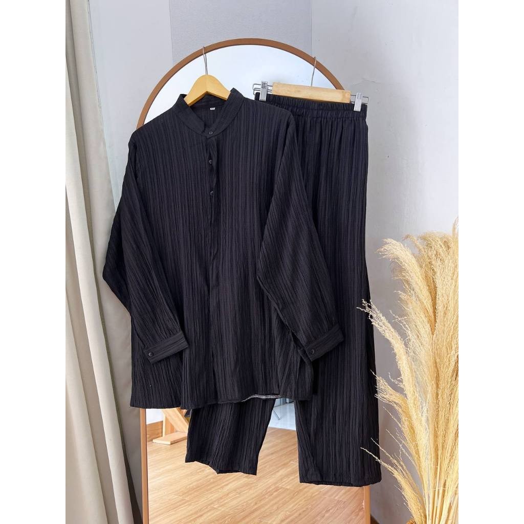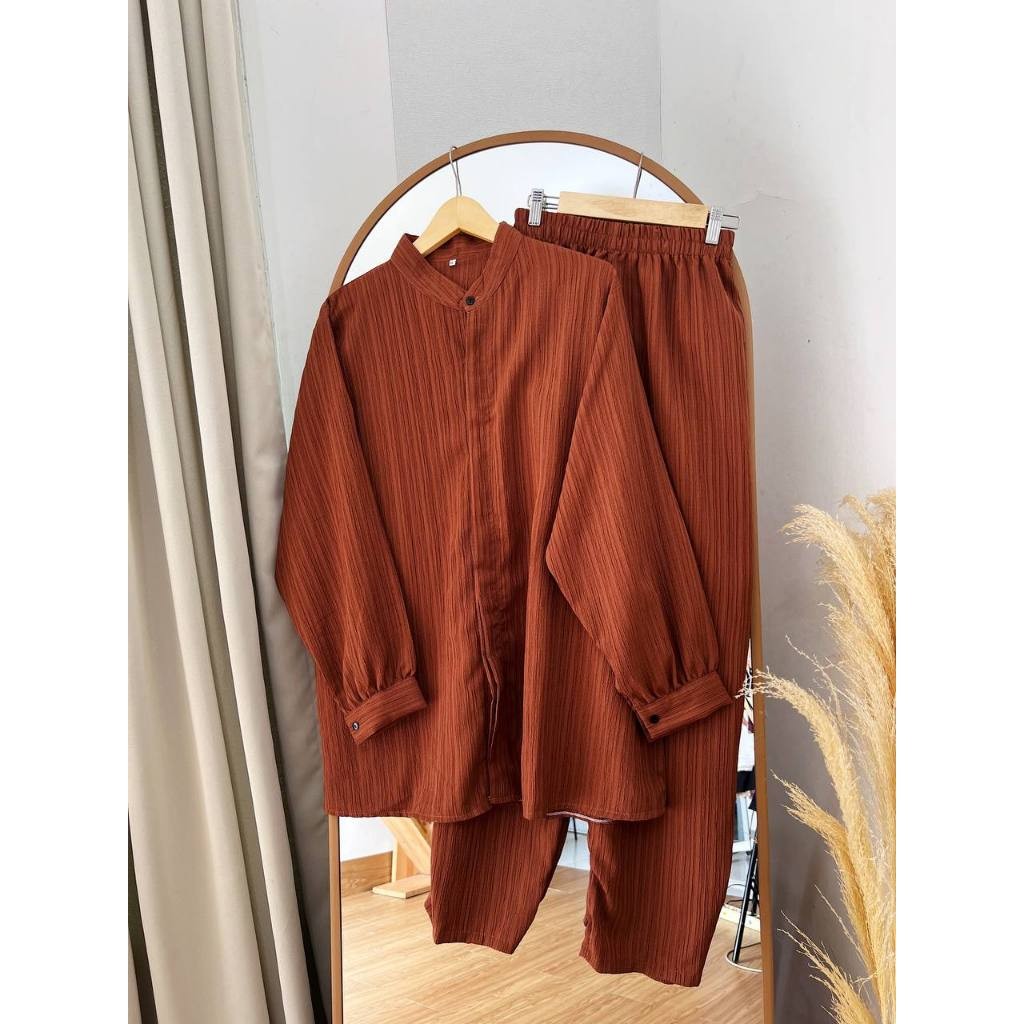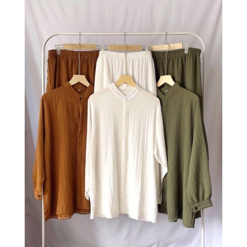 Oneset Lady Crush Yuk budayakan membaca sebelum membeli ^.^ Detail Produk ' Bahan Crinkle Lady Crush (Strech, Jatuh, tidak menerawang) ' Kerah model sanghai ' Penutup full kancing (Busui friendly) ' Lengan panjang, pergelangan berkancing (Hijab friendly) ' Pinggang celana full karet ' Model celana baggy panjang ' Saku di sebelah kanan Detail Size Atasan ` Lingkar dada 120 / 130 / 140 / 150 ` Lingkar tengah 130 / 140 / 150 / 160 ` Lingkar bawah 140 / 150 / 160 / 170 ` Lingkar ketiak 68 / 68 / 72 / 72 ` Lingkar Siku 44 / 48 / 50 / 52 ` Lingkar pergelangan 22 / 25 / 25 / 26 ` Panjang bahu 15 / 16 / 16 / 18 ` Panjang lengan 55 / 55 / 58 / 62 ` Panjang baju 74 / 75 / 80 / 85 Bawahan ` Size 120 / 130 / 140 / 150 ` Lingkar pinggang 76-125 / 83-130 / 84-135 / 82-160 ` Lingkar pinggul 130 / 146 / 148 / 164 ` Lingkar paha 82 / 90 / 90 / 100 ` Lingkar tengah (Betis) 65 / 68 / 70 / 75 ` Lingkar bawah 48 / 50 / 50 / 65 ` Panjang celana 100 / 100 / 100 / 100 ` Tinggi pesak 42 / 42 / 44 / 46 Note. ' Detail size diatas adalah hasil perataan sample acak ukur, perbedaan ukuran dari yang tertera diatas merupakan hal wajar karena produksi masal. Untoleransi ukuran / komplain ukuran jika ukuran pada produk lebih kecil / setara dengan ukuran yang diatasnya. ` Ketersediaan stok sesuai etalase, produk yang kosong akan kami konfirmasi sebelum di kirim, pastikan selalu memeriksa Chat pukul 18.00 untuk membalas konfirmasi jika produk kosong. Syarat klaim return : ` Tidak memberi penilaian dibawah bintang 4 ` Sertakan video unboxing, foto produk dan label putih kecil pada kemasan packing untuk mengklaim return ` Maksimal waktu return 3x24 jam setelah berang diterima ` Dana yang sudah masuk tidak bisa dikembalikan, kami mengganti barang yang sesuai pesanan/harga sama ` Kami hanya menanggung ongkir pp return maksimal 50.000 (sisanya ditanggung pengaju) ` Penjual berhak menolak klaim return bila tidak memenuhi persyaratan Pengiriman : ` pembayaran sebelum jam 16.00 ikut pengiriman di hari yang sama pada pengiriman masal pukul 18.00 ` Pemesanan Instant yang masuk sebelum jam 16.30 akan segera di proses ` Pemesanan sameday yang masuk sebelum jam 15.00 akan segera di proses ` Pesanan yang masuk diluar jam diatas, akan ikut pengiriman di keesokan harinya Waktu pengiriman : ` JNE/JTR/CARGO pengiriman hari senin-sabtu ` J&T/Instant/Sameday pengiriman setiap hari ` Membeli = setuju, happy shop ^.^