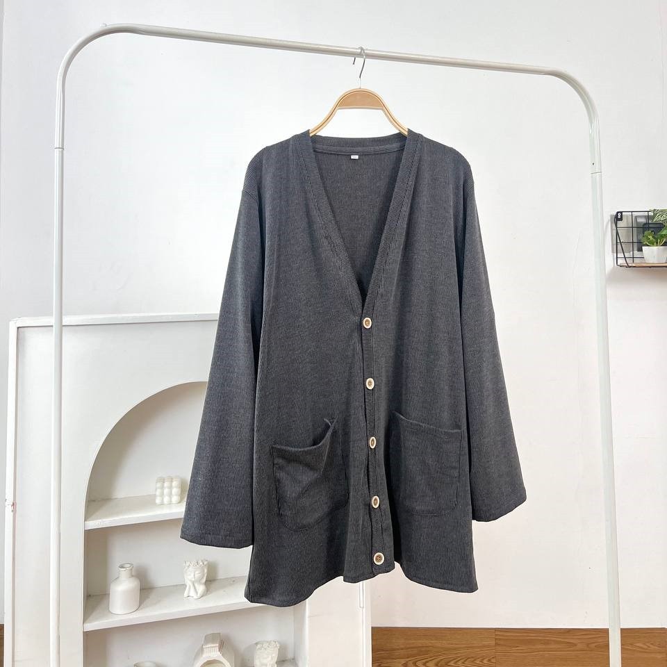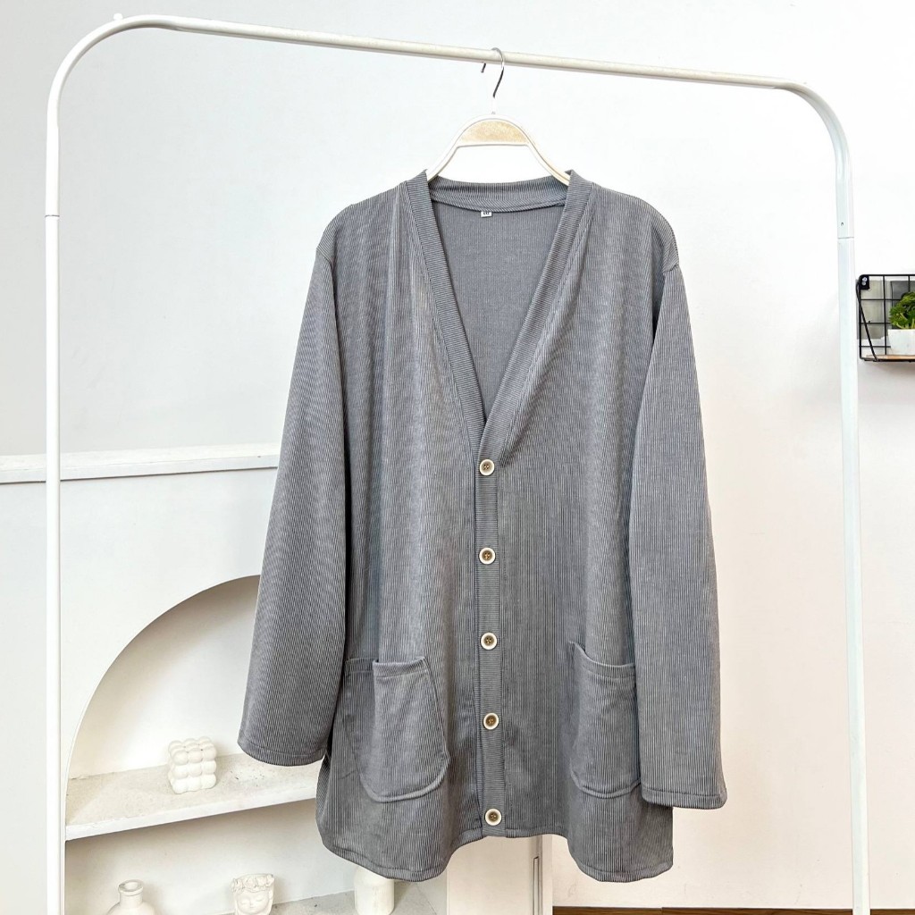 Detail Produk ` Bahan monic rib polos (strech) ` Cardigan cutting a-line ` Kerah v ` Penutup full kancing ` Lengan panjang ` Ada saku dikanan dan kiri Detail Size Ukuran Label . XXL / XXXL / XXXXL / 5L ' Lingkar dada . 118 / 128 / 140 / 148 ' Lingkar bawah . 118 / 128 / 140 / 148 ' Lingkar ketiak . 64 / 68 / 72 / 76 ' Lingkar lengan . 28 / 30 / 32 / 34 ' Panjang bahu . 13 / 13 / 15 / 16 ' Panjang lengan . 56 / 57 / 59 / 60 ' Panjang baju . 74 / 74 / 74 / 74 * ukuran diatas sebelum ditarik, setelah ditarik bisa melar 2-4cm