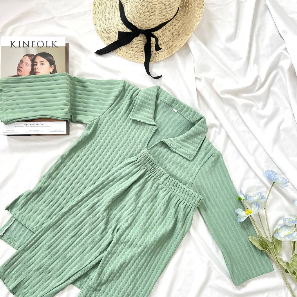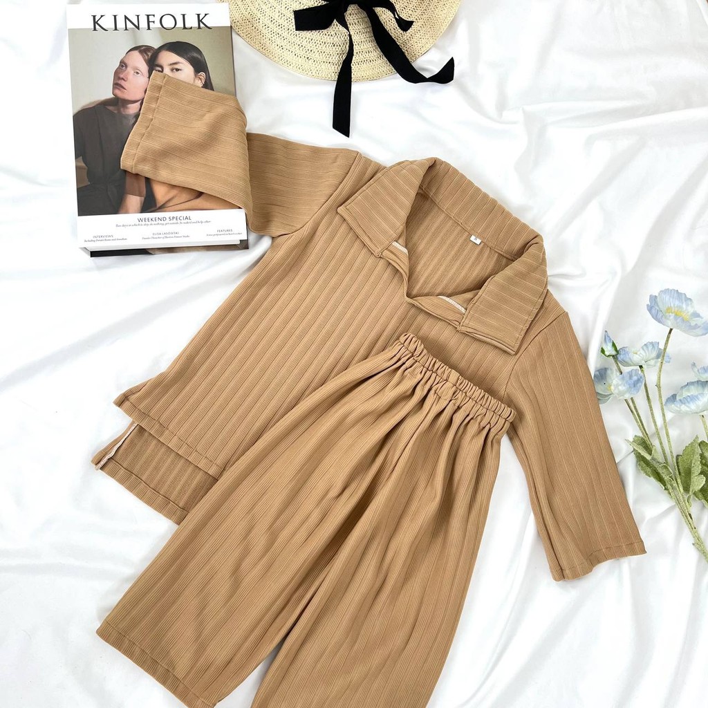 Detail Produk ` Bahan knit premium (no strech) ` Atasan t-shirt cutting lurus ` Leher v-neck berkerah ` Lengan panjang ` Bagian depan lebih panjang (pinguin) ` Celana baggy panjang ` Lingkar pinggang full karet Detail Size Ukuran Label S / M / L Lingkar Dada: 66 cm (S), 76 cm (M), 86 cm (L) Lingkar Bawah: 66 cm (S), 76 cm (M), 86 cm (L) Lingkar Ketiak: 30 cm (S), 34 cm (M), 40 cm (L) Lingkar Lengan: 22 cm (S), 24 cm (M), 26 cm (L) Panjang Bahu: 9 cm (S), 10 cm (M), 12 cm (L) Panjang Lengan: 27 cm (S), 33 cm (M), 38 cm (L) Panjang Baju Depan: 41 cm (S), 46 cm (M), 50 cm (L) Panjang Baju Belakang: 46 cm (S), 53 cm (M), 57 cm (L) Lingkar Pinggang: 80 cm (S), 85 cm (M), 90 cm (L) Lingkar Pinggul: 70 cm (S), 76 cm (M), 80 cm (L) Lingkar Paha: 46 cm (S), 50 cm (M), 56 cm (L) Lingkar Bawah: 36 cm (S), 38 cm (M), 40 cm (L) Panjang Celana: 47 cm (S), 52 cm (M), 54 cm (L) Tinggi Pesak: 19 cm (S), 21 cm (M), 21 cm (L) Note. ` Detail size diatas adalah hasil perataan sampel acak ukur, perbedaan ukuran dari yang tertera diatas merupakan hal wajar karen produksi masal. Intoleransi ukuran / komplain ukuran jika ukuran pada produk lebih kecil / setara dengan ukuran yang diatasnya ` Persentase kemiripan antara foto dan keaslian produk adalah 98% ` Tidak ada garansi tukar size ` Ketersediaan stok sesuai etalase, produk yang kosong akan kami konfirmasi sebelum di kirim, pastikan selalu memeriksa Chat pukul 18.00 untuk membalas konfirmasi jika produk kosong. Pengiriman : `Senin - Minggu (Sebelum jam 15.00 ikut pengiriman di hari yang sama) #Pesanan yang masuk diluar jam diatas, akan ikut pengiriman di keesokan harinya ` Membeli = setuju, happy shop ^.^