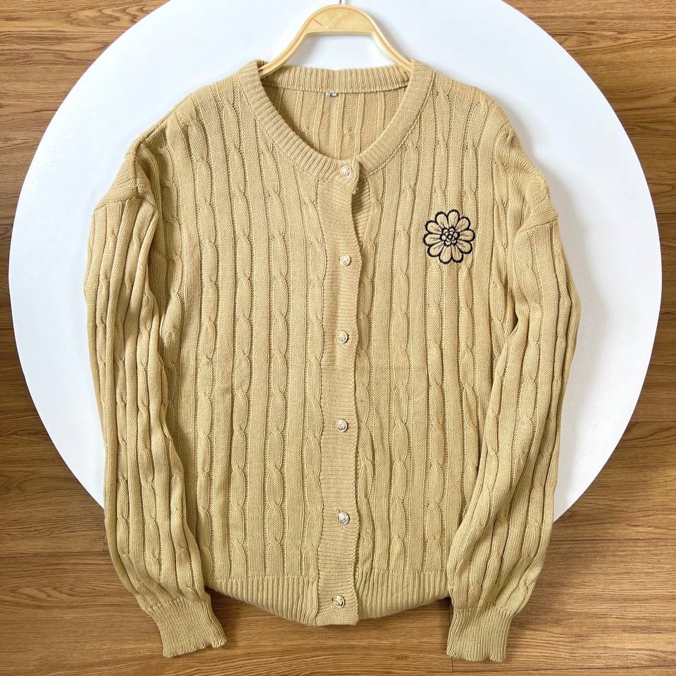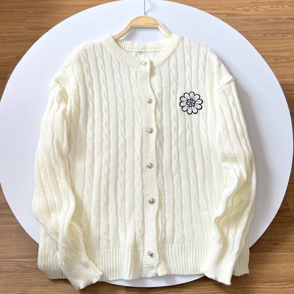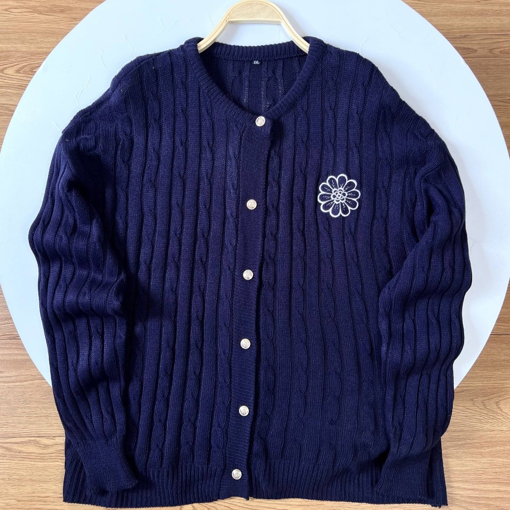 Detail Produk ` Bahan rajut pola cable knit ` Cardigan cutting a-line ` Leher tanpa kerah (U) ` Penutup full kancing aktif (busui friendly) ` Lengan panjang, pergelangan karet rib ` Variasi bordir bunga di sisi kiri dada Detail Size ` Ukuran Label . L / XL / XXL / XXXL ' Lingkar dada . 120 / 130 / 140 / 150 ' Lingkar bawah . 120 / 130 / 160 / 150 ' Lingkar lengan . 52 / 60 / 62 / 64 ' Lingkar pergelangan tangan . 30 / 32 / 34 / 36 ' Panjang bahu . 22 / 25 / 25 / 26 ' Panjang lengan . 56 / 56 / 56 / 56 ' Panjang baju . 62 / 64 / 64 / 66 Note. ' Lingkar bawah = Lingkar paling bawah / lingkar pinggul ' Detail size diatas adalah hasil perataan sample acak ukur, perbedaan ukuran dari yang tertera diatas merupakan hal wajar karena produksi masal. Untoleransi ukuran / komplain ukuran jika ukuran pada produk lebih kecil / setara dengan ukuran yang diatasnya. ` Persentase kemiripan antara foto dan keaslian produk adalah 98% ` Tidak ada garansi tukar size ' Ukuran pada detail size setelah melar ` Ketersediaan stok sesuai etalase, produk yang kosong akan kami konfirmasi sebelum di kirim, pastikan selalu memeriksa Chat pukul 18.00 untuk membalas konfirmasi jika produk kosong. Pengiriman : ` pembayaran sebelum jam 15.00 ikut pengiriman di hari yang sama (reguler pengiriman masal pukul 18.00 / instant atau sameday diproses setiap jam pada 08.00 - 15.00) ` Pesanan yang masuk diluar jam diatas, akan ikut pengiriman di keesokan harinya Waktu pengiriman : ` J&T/Instant/Sameday pengiriman setiap hari ` Membeli = setuju, happy shop ^.^