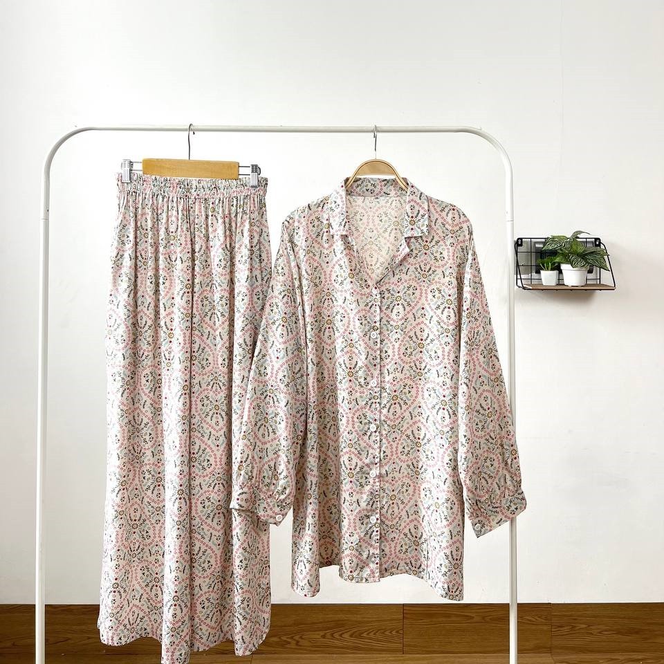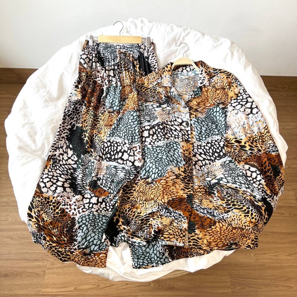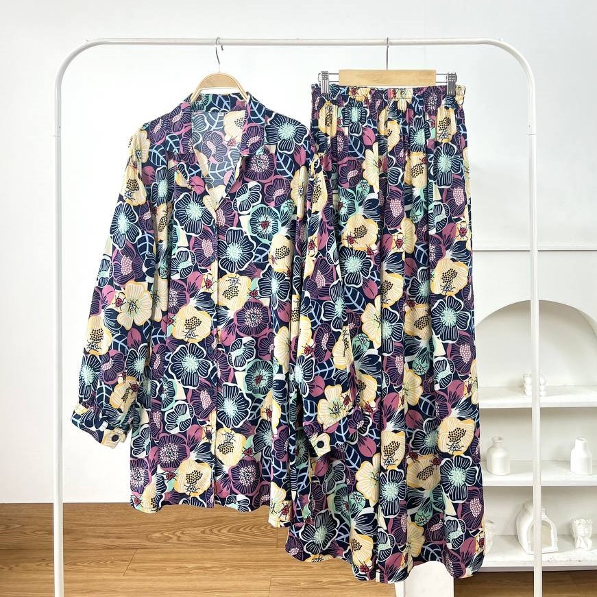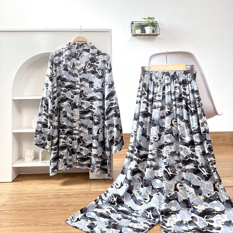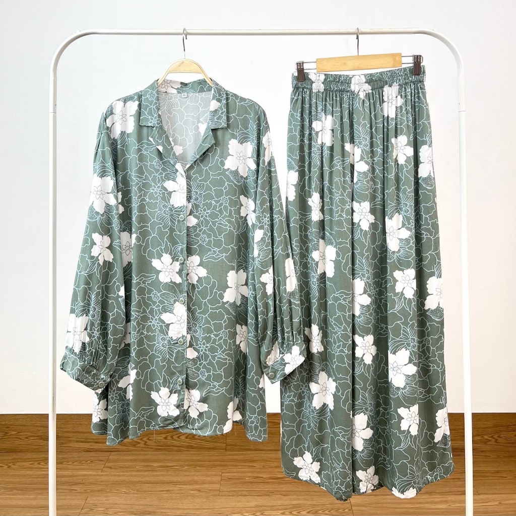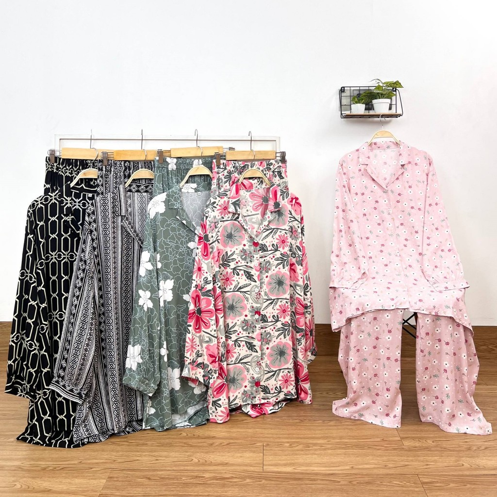 Detail Produk ` Bahan Rayon ( non Stretch) ` Atasan cutting A-Line model kemeja ` Bawahan cutting V-line / Baggy pants ` Kerah model Shirt Collar ` Penutup full kancing (Busui friendly) ` Lengan panjang, pergelangan berkancing ` Lingkar pinggang full karet (bumil friendly) ` Kantong celana kanan dan kiri Detail Size Atasan ' Lingkar dada . 110 / 120 / 130 / 140 / 150 ' Lingkar tengah . 120 / 135 / 140 / 150 / 160 ' Lingkar bawah . 135 / 150 / 155 / 170 / 180 ' Lingkar ketiak . 58 / 66 / 66 / 66 / 70 ' Lingkar siku . 42 / 48 / 50 / 50 / 54 ' Lingkar pergelangan . 28/ 32 / 33 / 35 / 35 ' Panjang bahu . 15/ 16 / 17 / 18 / 19 ' Panjang lengan . 54 / 54 / 54 / 56 / 57 ' Panjang baju . 77 / 81 / 81 / 83 / 86 Bawahan ' Lingkar pinggang . 63-120 / 65-130 / 65-140 / 70-145 / 70-145 ' Lingkar pinggul . 120 / 130 / 145 / 160 / 170 ' Lingkar Paha . 70 / 80 / 90 / 95 / 100 ' Lingkar Kaki . 64 / 70 / 75 / 75 / 75 ' Panjang Celana . 98 / 99 / 99 / 99 / 99 ' Tinggi Pesak . 37 / 38 / 38 / 40 / 40 Note. ' Lingkar bawah = Lingkar paling bawah / lingkar pinggul ' Detail size diatas adalah hasil perataan sample acak ukur, perbedaan ukuran dari yang tertera diatas merupakan hal wajar karena produksi masal. Untoleransi ukuran / komplain ukuran jika ukuran pada produk lebih kecil / setara dengan ukuran yang diatasnya. ` Persentase kemiripan antara foto dan keaslian produk adalah 98% ` Tidak ada garansi tukar size ` Ketersediaan stok sesuai etalase, produk yang kosong akan kami konfirmasi sebelum di kirim, pastikan selalu memeriksa Chat pukul 18.00 untuk membalas konfirmasi jika produk kosong. Pengiriman : ` pembayaran sebelum jam 15.00 ikut pengiriman di hari yang sama (reguler pengiriman masal pukul 18.00 / instant atau sameday diproses setiap jam pada 08.00 - 15.00) ` Pesanan yang masuk diluar jam diatas, akan ikut pengiriman di keesokan harinya Waktu pengiriman : ` J&T/Instant/Sameday pengiriman setiap hari ` Membeli = setuju, happy shop ^.^