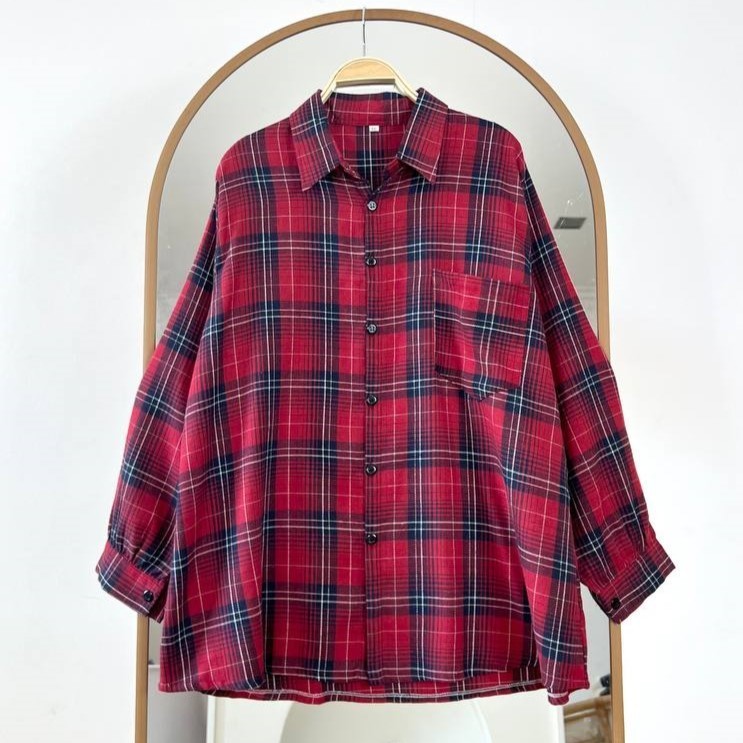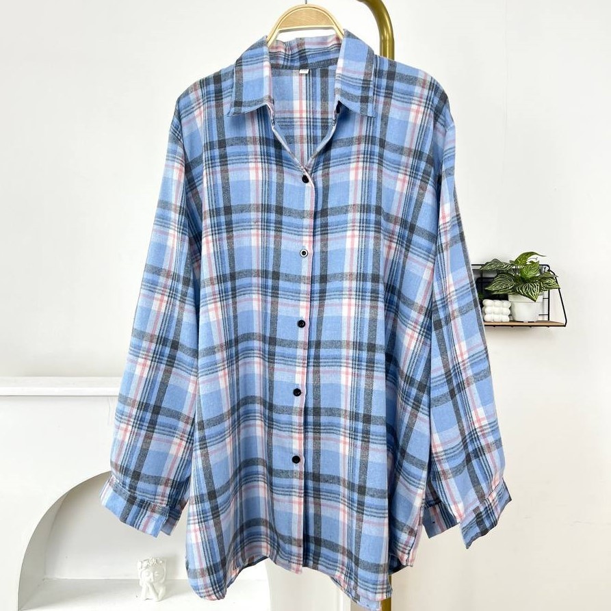 Detail Produk ` Bahan flanel motif ( no strech) ` Cutting A-line model Kemeja ` Leher berkerah ` Penutup full kancing (busui friendly) ` Lengan panjang, pergelangan berkancing Detail Size ' Lingkar dada . 120 / 130 / 140 / 150 ' Lingkar bawah . 135 / 145 / 150 / 160 ' Lingkar ketiak . 64 / 68 / 70 / 73 ' Lingkar pergelangan . 24 / 25 / 26 / 27 ' Panjang bahu . 15 / 15 / 17 / 17 ' Panjang lengan . 56 / 58 / 59 / 62 ' Panjang baju . 77 / 78 / 80 / 81 Note. ` Detail size diatas adalah hasil perataan sampel acak ukur, perbedaan ukuran dari yang tertera diatas merupakan hal wajar karen produksi masal. Intoleransi ukuran / komplain ukuran jika ukuran pada produk lebih kecil / setara dengan ukuran yang diatasnya ` Persentase kemiripan antara foto dan keaslian produk adalah 98% ` Ketersediaan stok sesuai etalase, produk yang kosong akan kami konfirmasi sebelum di kirim, pastikan selalu memeriksa Chat pukul 18.00 untuk membalas konfirmasi jika produk kosong. Pengiriman : ` pembayaran sebelum jam 16.00 ikut pengiriman di hari yang sama pada pengiriman masal pukul 18.00 ` Pemesanan Instant yang masuk sebelum jam 16.00 akan segera di proses ` Pemesanan sameday yang masuk sebelum jam 15.00 akan segera di proses ` Pesanan yang masuk diluar jam diatas, akan ikut pengiriman di keesokan harinya Waktu pengiriman : ` JNE/JTR/CARGO pengiriman hari senin-sabtu ` J&T/Instant/Sameday pengiriman setiap hari ` Membeli = setuju, happy shop ^.^