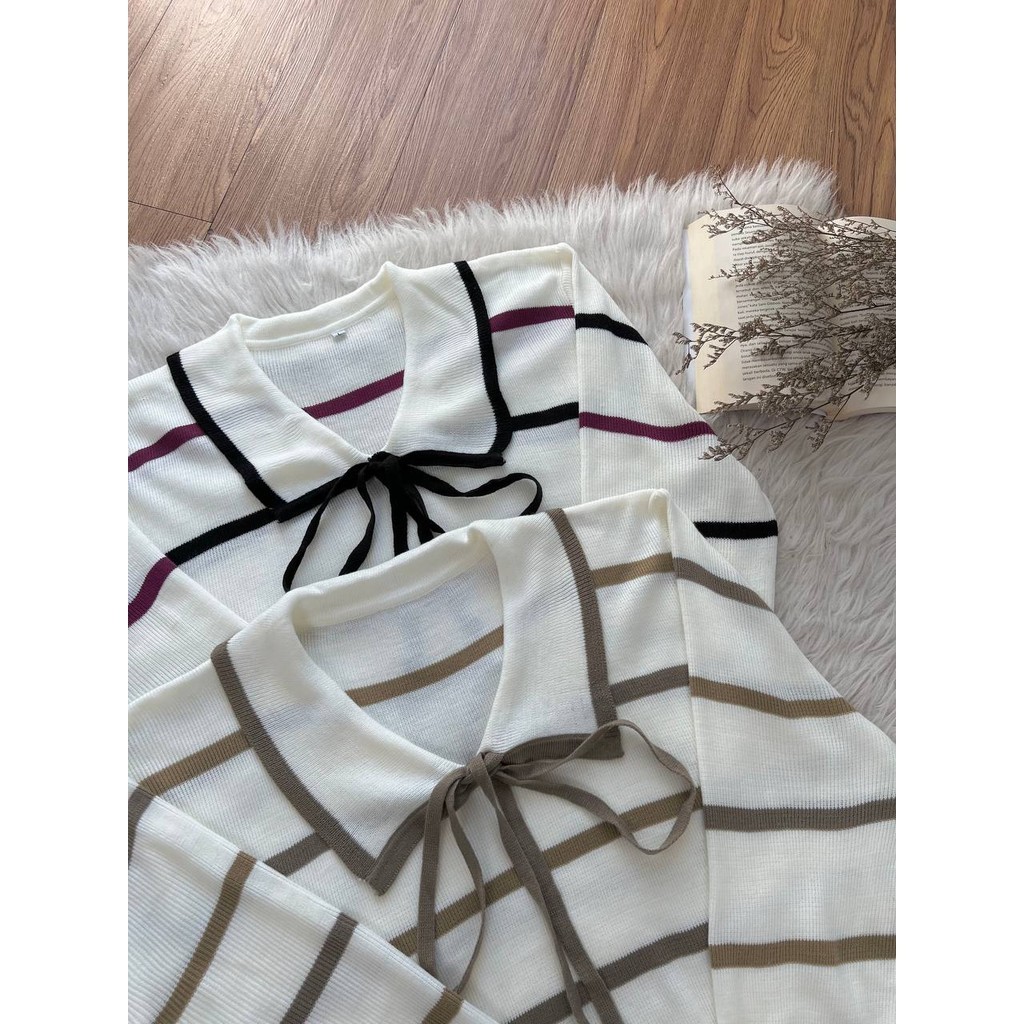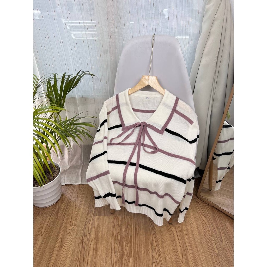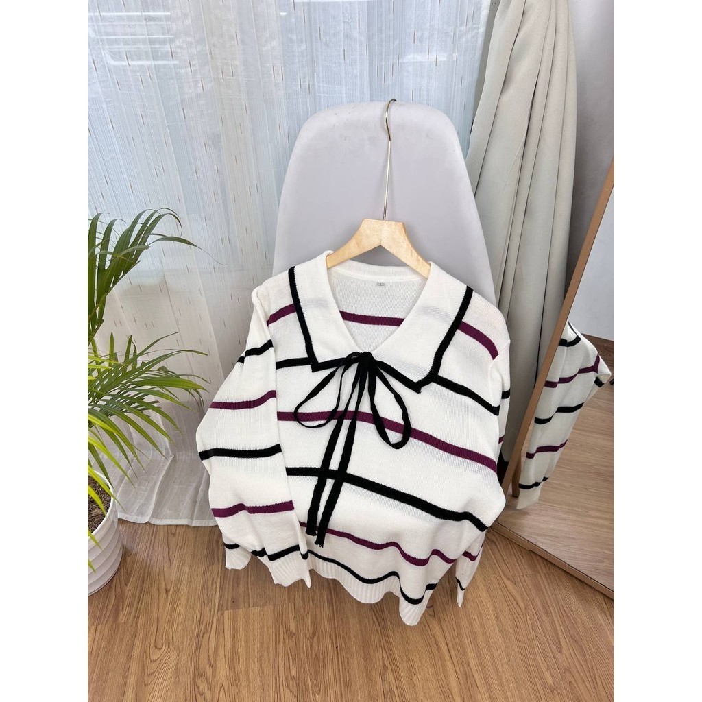 Detail Produk ` Bahan rajut motif salur (strech) ` Sweater cutting a-line ` Kerah sailor ` Lengan panjang, pergelangan karet rib Detail Size ' Lingkar dada . 120 / 130 / 140 / 150 ' Lingkar bawah . 120 / 134 / 144 / 152 ' Lingkar ketiak . 58 / 64 / 68 / 70 ' Lingkar lengan . 28 / 30 / 32 / 34 ' Panjang bahu . 21 / 22 / 23 / 25 ' Panjang lengan . 46 / 52 / 55 / 53 ' Panjang baju . 58 / 66 / 66 /68 Note. ` Detail size diatas adalah hasil perataan sampel acak ukur, perbedaan ukuran dari yang tertera diatas merupakan hal wajar karen produksi masal. Intoleransi ukuran / komplain ukuran jika ukuran pada produk lebih kecil / setara dengan ukuran yang diatasnya ` Persentase kemiripan antara foto dan keaslian produk adalah 98% ` Ketersediaan stok sesuai etalase, produk yang kosong akan kami konfirmasi sebelum di kirim, pastikan selalu memeriksa Chat pukul 18.00 untuk membalas konfirmasi jika produk kosong. Pengiriman : `Senin - Minggu (Sebelum jam 15.00 ikut pengiriman di hari yang sama) #Pesanan yang masuk diluar jam diatas, akan ikut pengiriman di keesokan harinya ` Membeli = setuju, happy shop ^.^