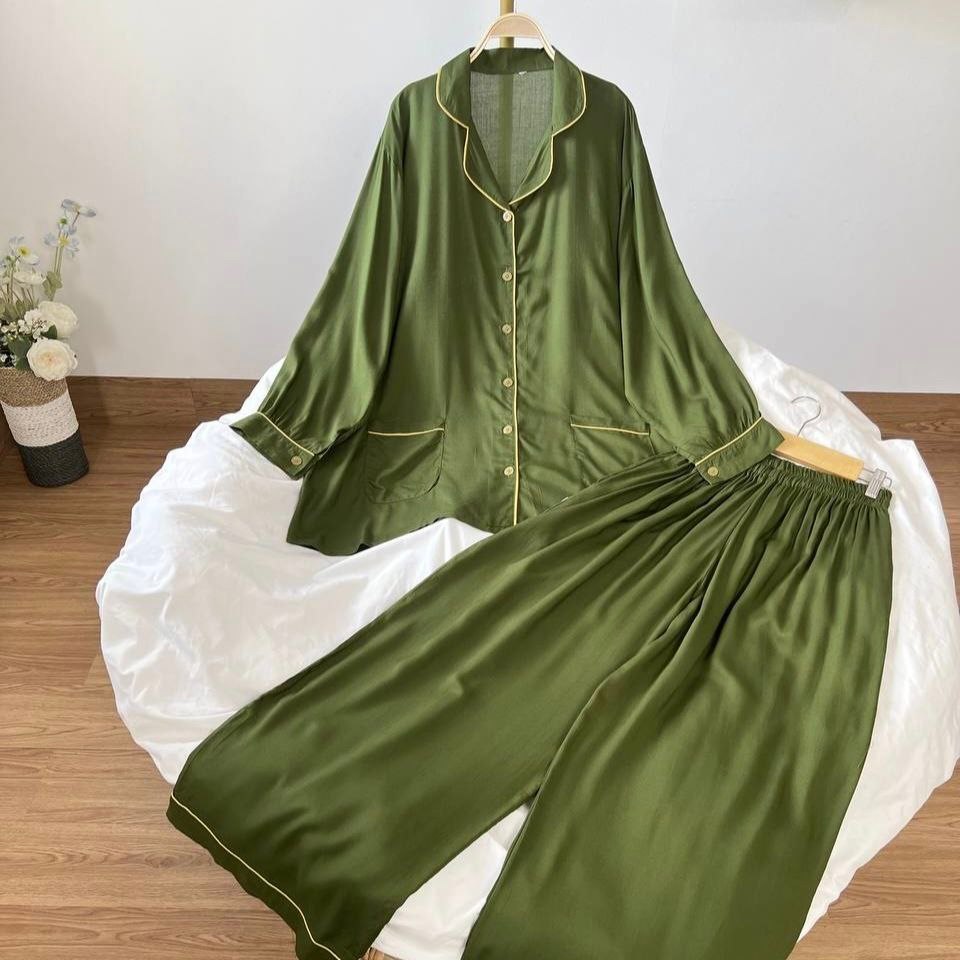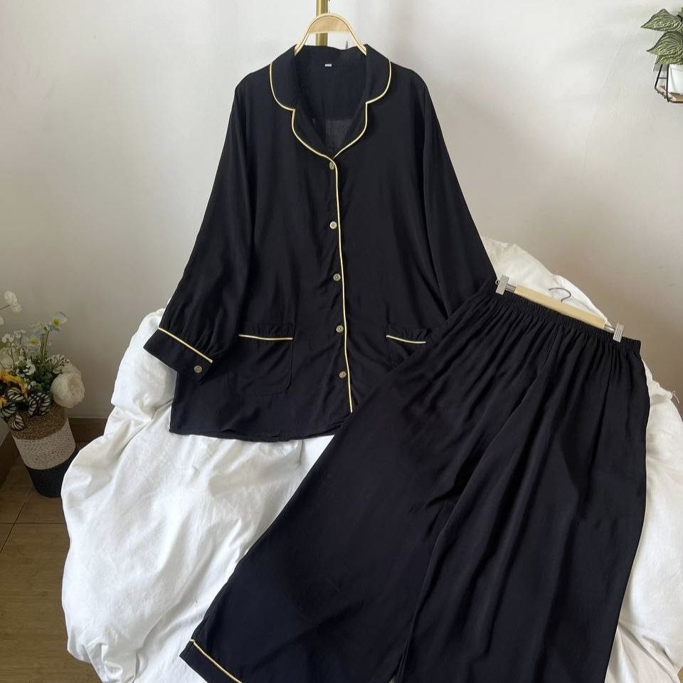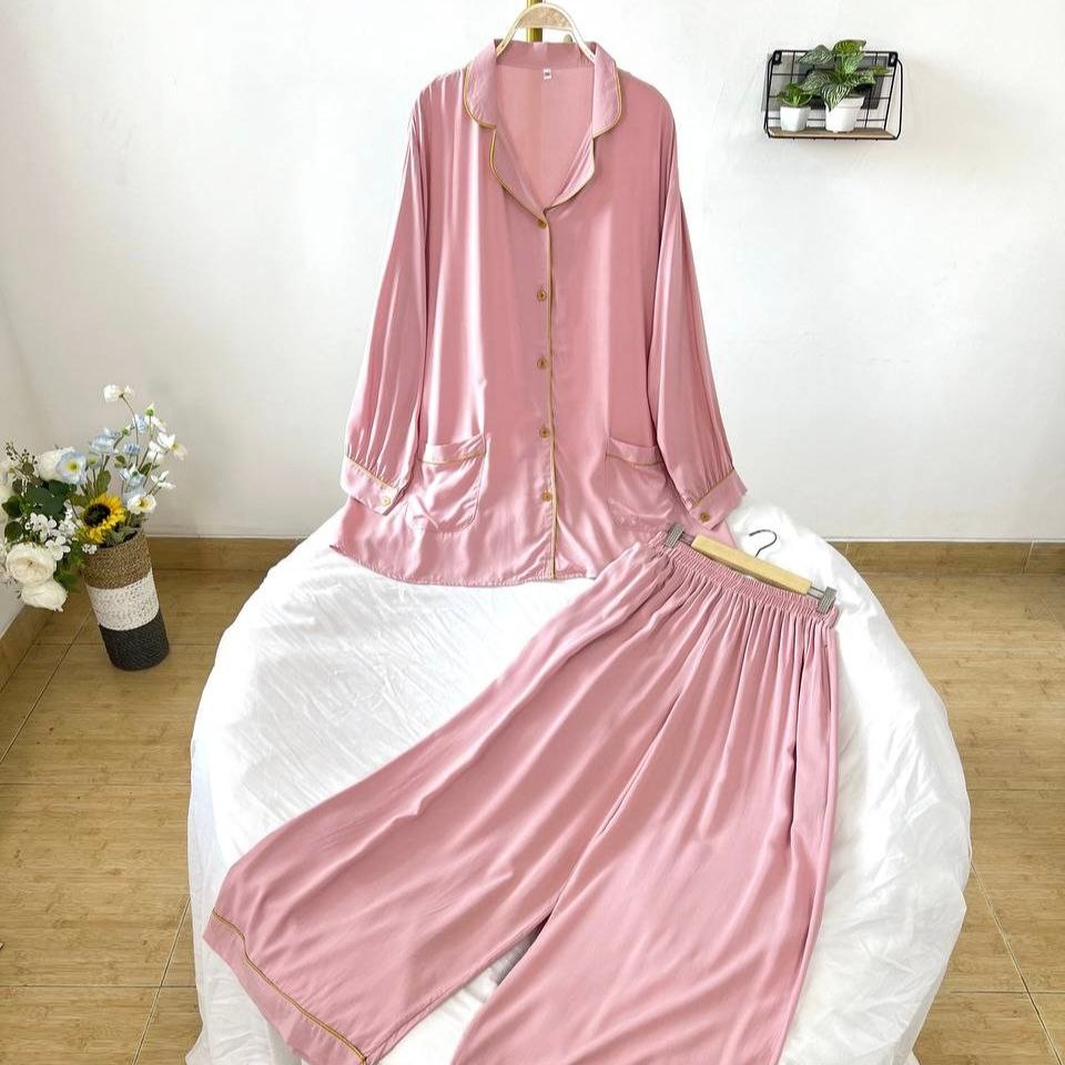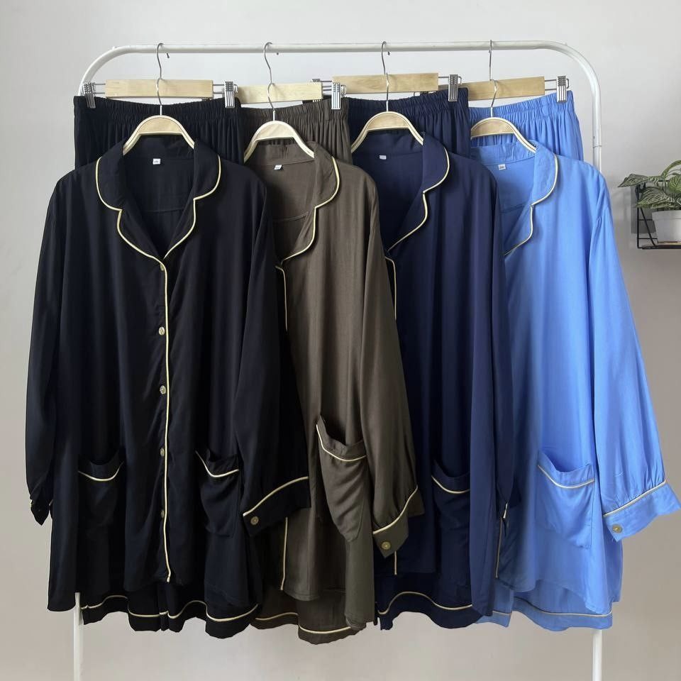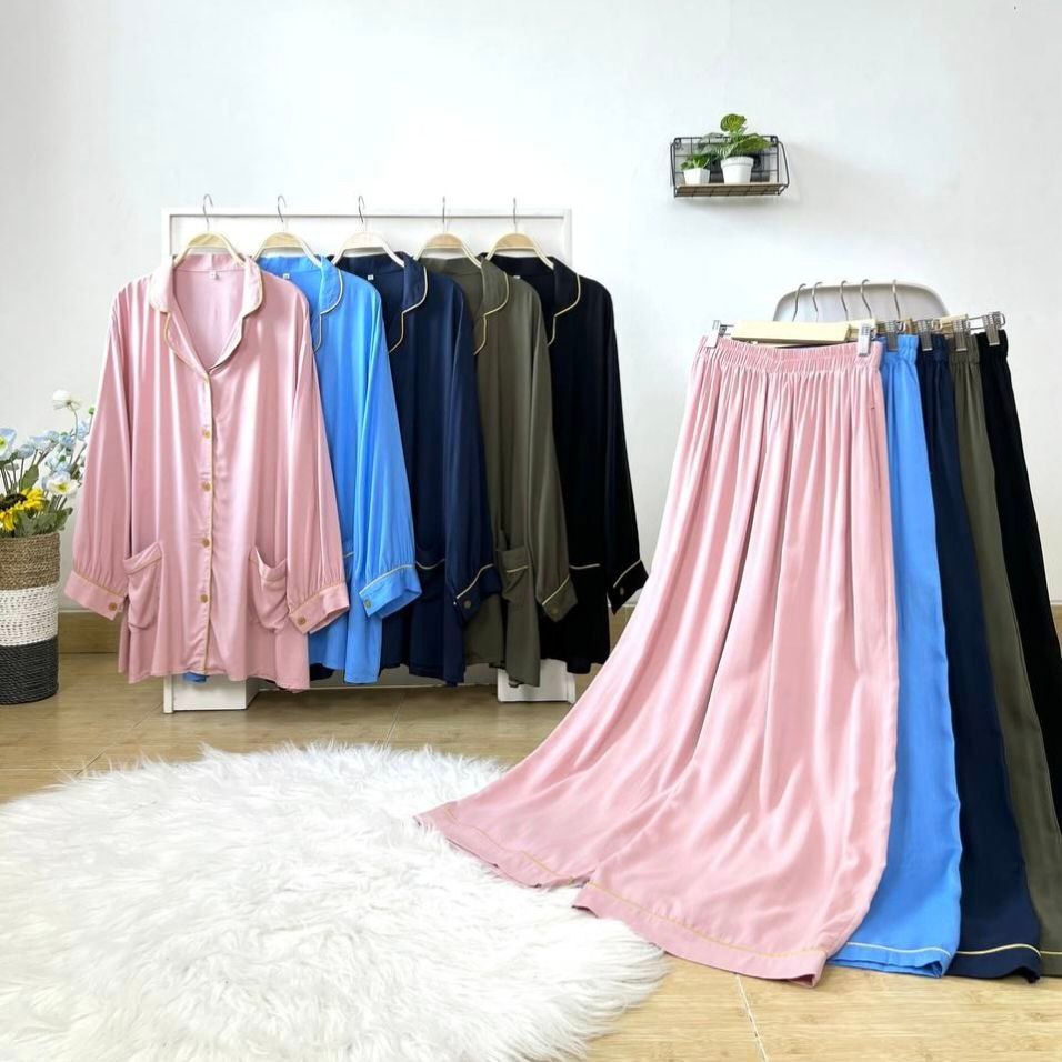 Detail Produk ` Bahan rayon polos (no strech) ` Atasan kemeja cutting a-line, bawahan baggy ` Kerah pajamas notched ` Penutup full kancing hidup (busui friendly) ` Lengan panjang, pergelangan berkancing ` Kantong dibagian bawah kanan dan kiri ` Pinggang celana full karet ` Celana panjang, ada saku disebelah kanan Detail Size ' Size on tag . 2XL (<85kg) / 3XL (<100kg) / 4XL (<110kg) / 5XL (<120kg) ' Lingkar dada . 120 / 130 / 140 / 150 ' Lingkar bawah . 146 / 152 / 166 / 176 ' Lingkar ketiak . 62 / 68 / 70 / 72 / ' Lingkar lengan . 26 / 28 / 30 / 32 ' Panjang bahu . 17 / 17 / 19 / 21 ' Panjang lengan . 55 / 56 / 57 / 58 ' Panjang baju . 77 / 80 / 82 / 84 ' Lingkar pinggang. 120 / 138 / 140 / 154 ' Lingkar pinggul. 132 / 150 / 156 / 160 ' Lingkar paha . 80 / 90 / 94 / 100 ' Lingkar bawah . 64 / 68 / 70 / 74 ' Panjang celana . 100 / 100 / 100 / 100 ' Tinggi pesak . 32 / 34 / 36 / 37 Note. ` Detail size diatas adalah hasil perataan sampel acak ukur, perbedaan ukuran dari yang tertera diatas merupakan hal wajar karen produksi masal. Intoleransi ukuran / komplain ukuran jika ukuran pada produk lebih kecil / setara dengan ukuran yang diatasnya ` Persentase kemiripan antara foto dan keaslian produk adalah 98% ` Ketersediaan stok sesuai etalase, produk yang kosong akan kami konfirmasi sebelum di kirim, pastikan selalu memeriksa Chat pukul 18.00 untuk membalas konfirmasi jika produk kosong. Pengiriman : `Senin - Minggu (Sebelum jam 15.00 ikut pengiriman di hari yang sama) #Pesanan yang masuk diluar jam diatas, akan ikut pengiriman di keesokan harinya ` Membeli = setuju, happy shop ^.^