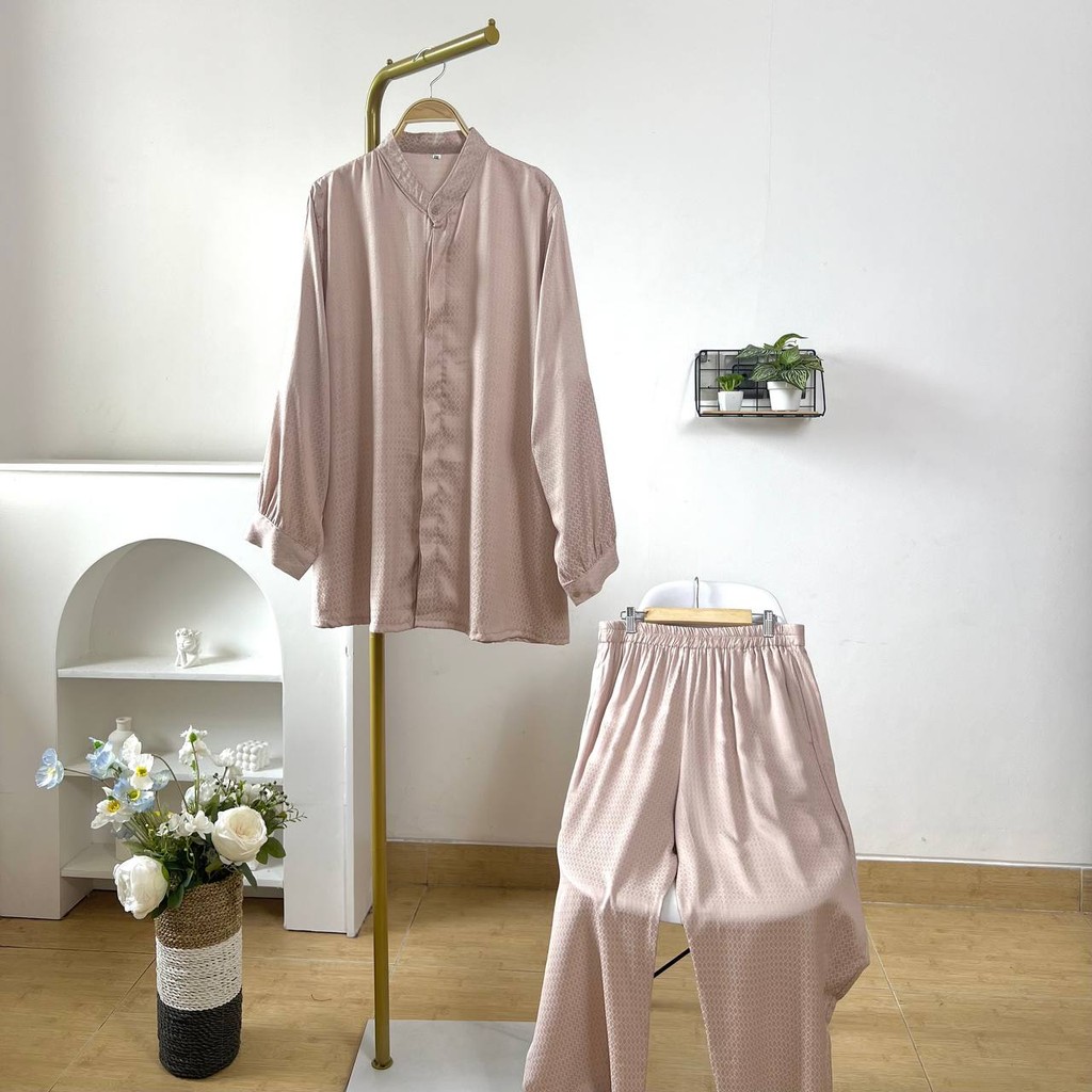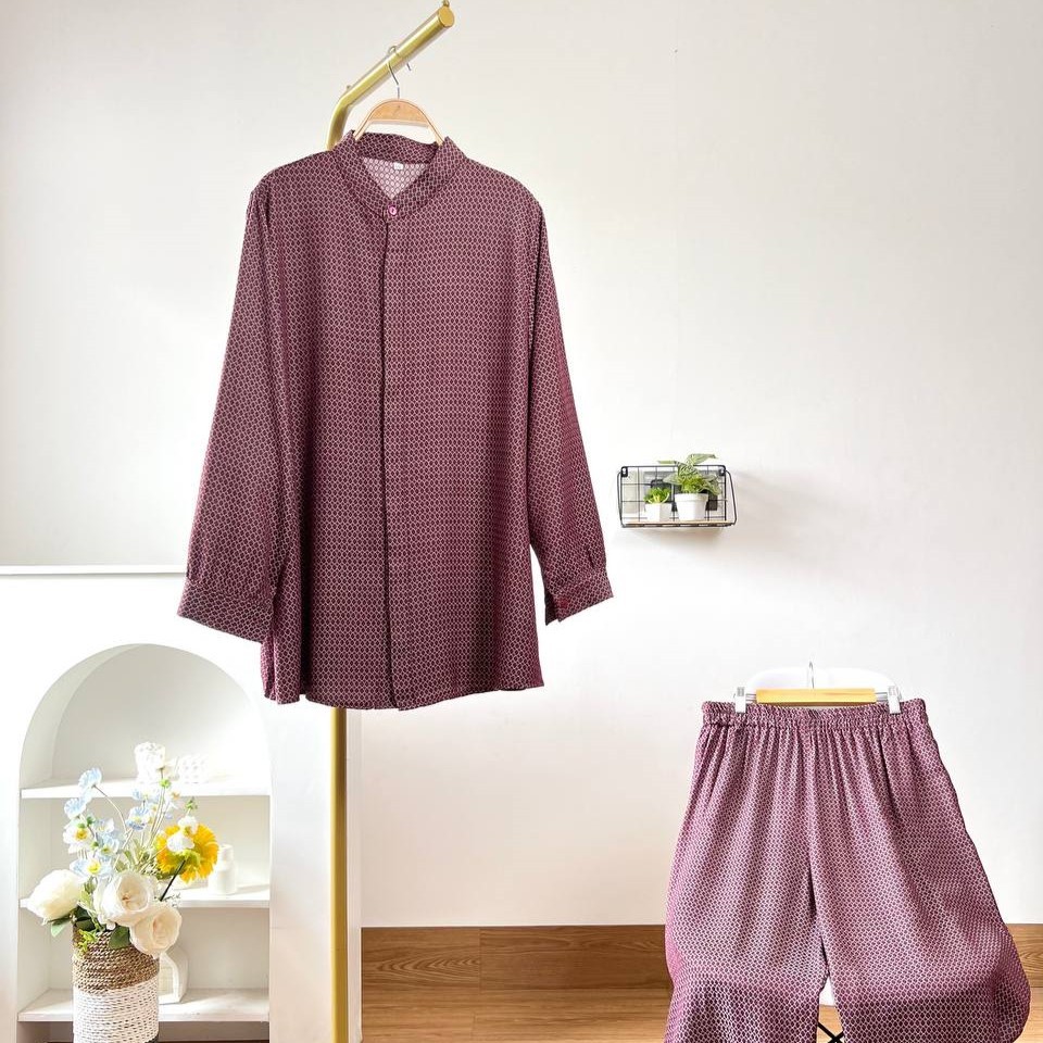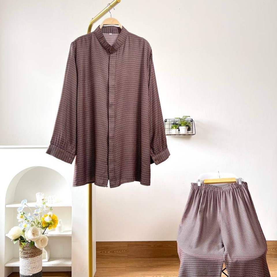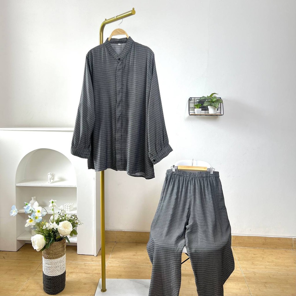 Detail Produk ` Bahan jacguard full motif (no strech) ` Kemeja cutting a-line ` Celana cutting baggy ` Leher kerah sanghai ` Penutup full kancing hidup ` Lengan panjang, pergelangan berkancing ` Pinggang full karet ` Ada saku dibagian kanan celana Detail Size Ukuran Label . XXL / XXXL / XXXXL / 5L ' Lingkar dada . 115 / 125 / 135 / 145 ' Lingkar bawah . 134 / 144 / 152 / 162 ' Lingkar ketiak . 60 / 66 / 72 / 74 ' Lingkar lengan . 24 / 24 / 24 / 26 ' Panjang bahu . 13 / 15 / 16 / 17 ' Panjang lengan . 55 / 56 / 57 / 58 ' Panjang baju . 73 / 75 / 78 / 80 Size XXL / XXXL / XXXXL / 5XL ' Lingkar pinggang. 114 / 122 / 128 / 140 ' Lingkar pinggul. 122 / 132 / 142 / 152 ' Lingkar paha . 70 / 80 / 90 / 94 ' Lingkar bawah . 42 / 46 / 52 / 58 ' Panjang celana . 98 / 98 / 98 / 98 ' Tinggi pesak . 38 / 38 / 41 / 41 Note. ` Detail size diatas adalah hasil perataan sampel acak ukur, perbedaan ukuran dari yang tertera diatas merupakan hal wajar karen produksi masal. Intoleransi ukuran / komplain ukuran jika ukuran pada produk lebih kecil / setara dengan ukuran yang diatasnya ` Persentase kemiripan antara foto dan keaslian produk adalah 98% ` Tidak ada garansi tukar size ` Ketersediaan stok sesuai etalase, produk yang kosong akan kami konfirmasi sebelum di kirim, pastikan selalu memeriksa Chat pukul 18.00 untuk membalas konfirmasi jika produk kosong. Pengiriman : `Senin - Minggu (Sebelum jam 15.00 ikut pengiriman di hari yang sama) #Pesanan yang masuk diluar jam diatas, akan ikut pengiriman di keesokan harinya ` Membeli = setuju, happy shop ^.^